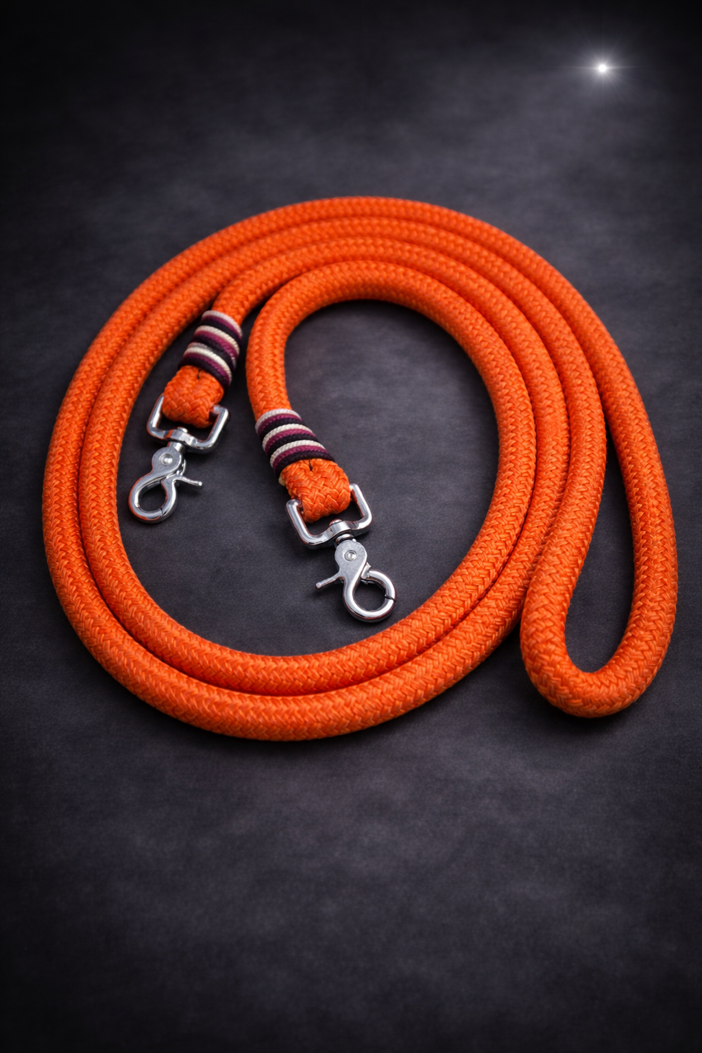 Longe Orange + pompom, tressage canneberge, or brillant et noir